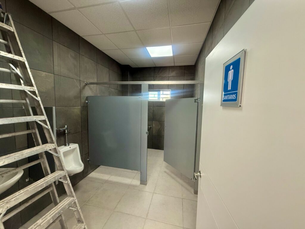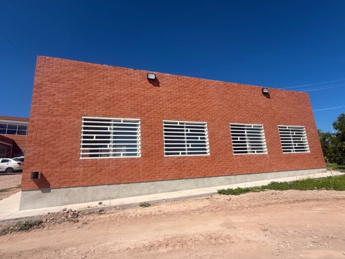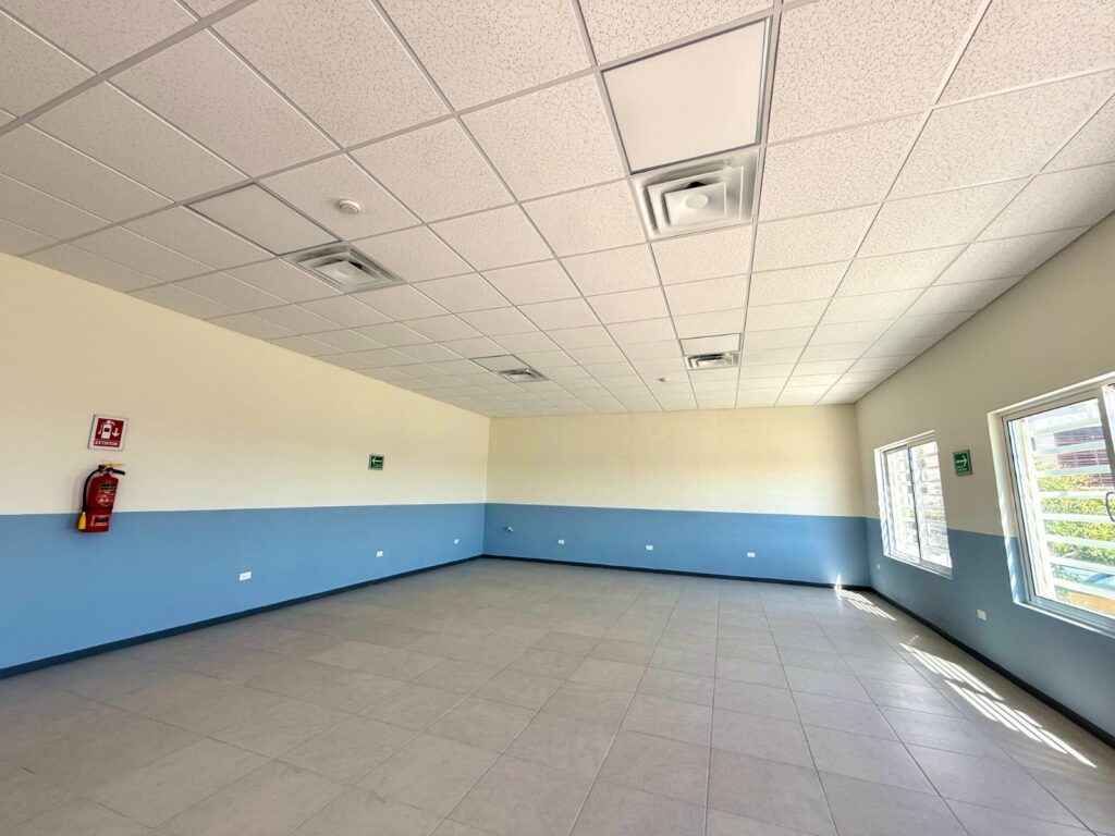 Entre los trabajos ejecutados destaca la instalación de fachaleta tipo ladrillo en el exterior, cableado eléctrico en todo el edificio, colocación de plafón, puertas de madera, trabajos de pintura e instalación de unidades de climatización, garantizando un espacio funcional, moderno y seguro para eventos y actividades comunitarias.