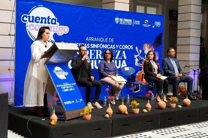 La secretaria de Cultura, Alejandra Enríquez, encabezó el inicio del programa “Orquestas Sinfónicas y Coro Esperanza Chihuahua”, una estrategia que impactará a cerca de 500 niñas, niños y jóvenes en distintos municipios de la entidad.