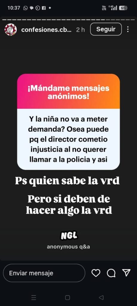 Finalmente, se informa que el hecho referido ocurrió en la vía pública, fuera del perímetro institucional, por lo que no corresponde a las funciones del personal de seguridad del plantel. Se exhorta a la comunidad a informarse únicamente a través de canales oficiales y no dar crédito a páginas no institucionales que difunden rumores o información no verificada.»