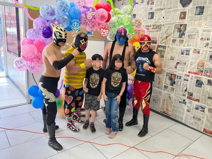 Este sábado 25 de abril, en el edificio ubicado en el bulevar Zaragoza #672, se convirtió en una arena de lucha libre para los niños que asistieron a la celebración, en donde disfrutaron de música en vivo, la exhibición de lucha libre, además de comer dulces, pizza, y pastel.