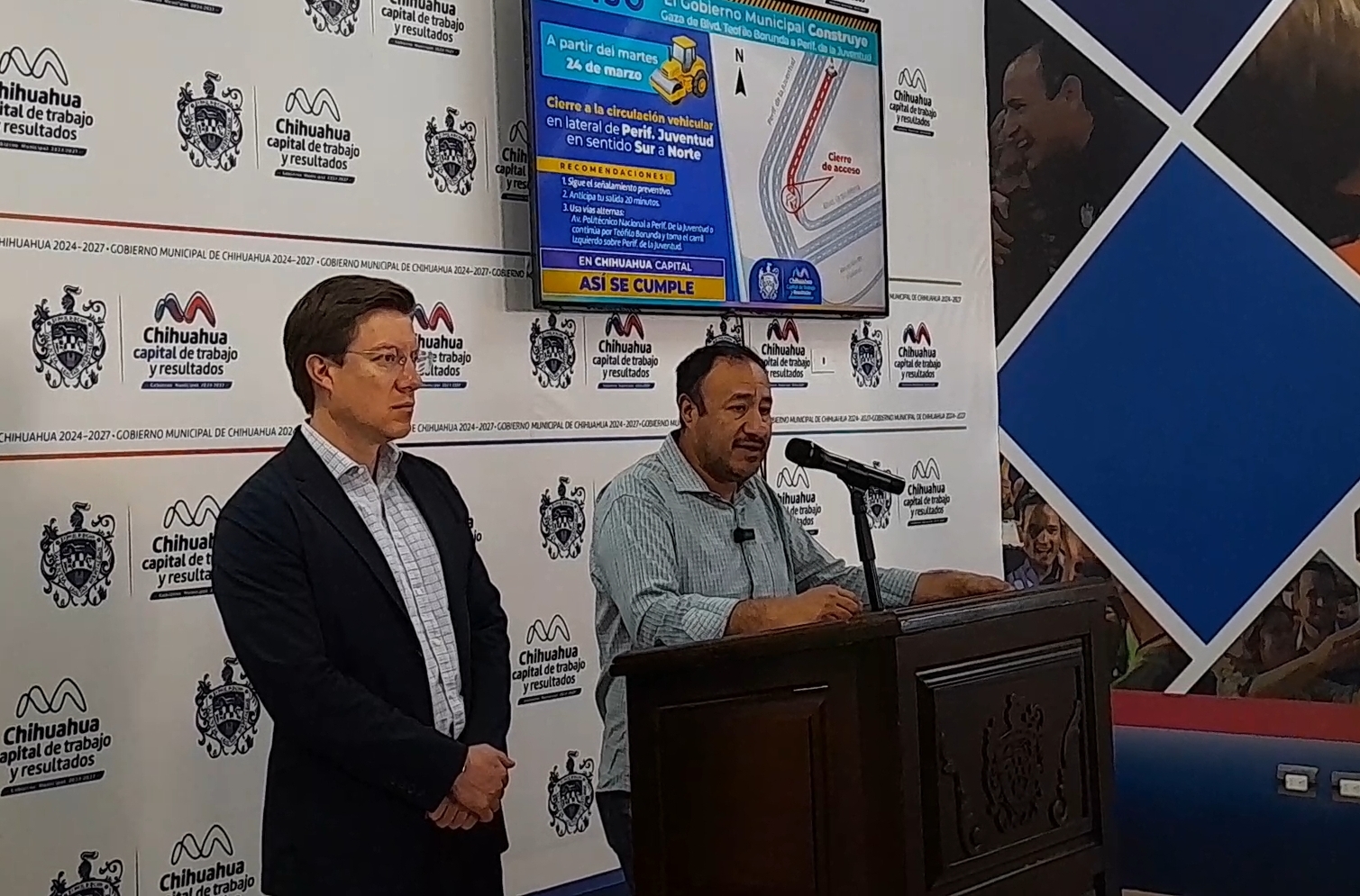 El director de Obras Públicas Municipales, Carlos Rivas, informó sobre el cierre temporal de la lateral intermedia del Periférico de la Juventud, en sentido del bulevar Ortiz Mena hacia el norte, debido a trabajos relacionados con la construcción de la gaza de incorporación en Teófilo Borunda.