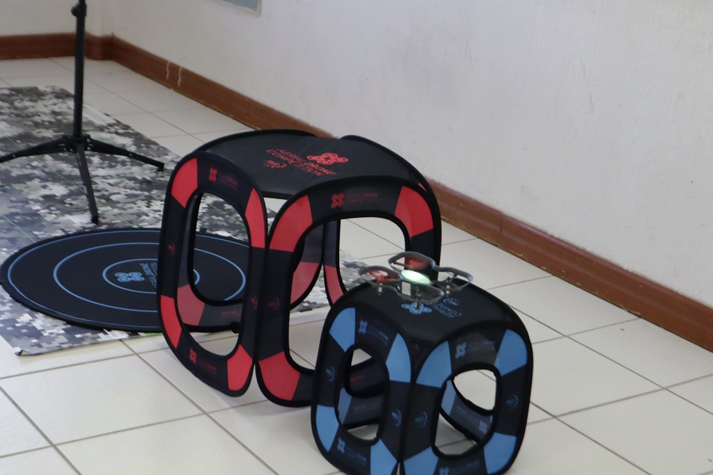 Óscar Serrano, uno de los funcionarios que participó en la revisión, constató que dicha área consta de 10 vehículos aéreos no tripulados para competencias, así como una pista de obstáculos, como las que se utilizan en certámenes.