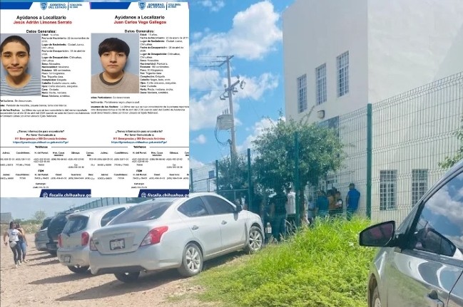 Juan Carlos Vega Gallegos, de 15 años, mide 1.60 metros, pesa 50 kilos, tez trigueña clara, complexión delgada, cabello negro lacio y ojos cafés. Jesús Adrián Limones Serrato, de 14 años, mide 1.65 metros, pesa 50 kilos, tez trigueña clara, cabello castaño oscuro corto y ojos cafés; vestía pantalón de mezclilla, playera blanca y tenis blancos. Ninguno presenta señas particulares.