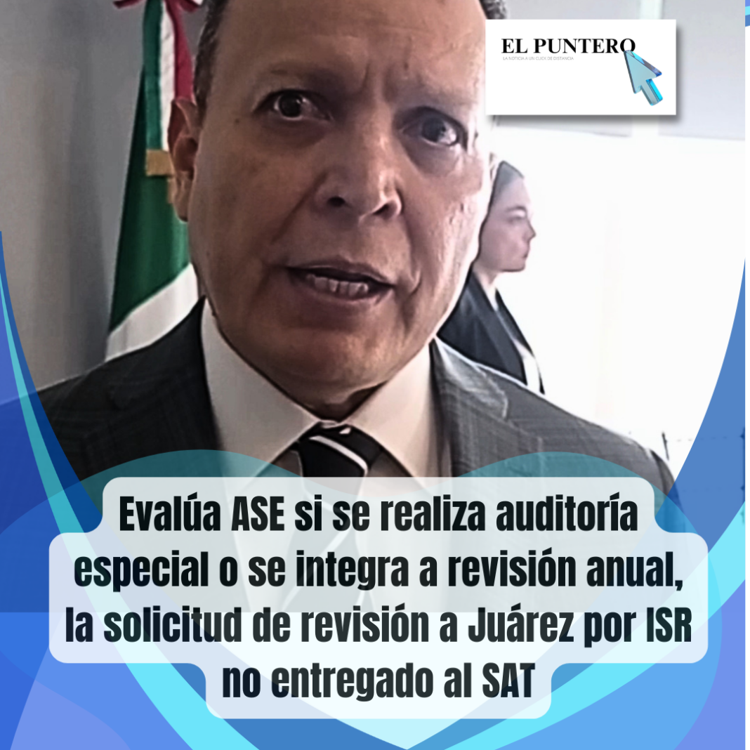 Chihuahua, Chih. – La Auditoría Superior del Estado (ASE) recibió la solicitud del Congreso del Estado para realizar una auditoría sobre los recursos del Ayuntamiento de Ciudad Juárez, específicamente en relación con las retenciones del Impuesto Sobre la Renta (ISR) que no fueron entregadas al Servicio de Administración Tributaria (SAT), informó el Auditor Superior, Héctor Acosta, quien señaló que una revisión especial tardaría alrededor de tres meses en realizarse, sin embargo se está evaluando si se cuenta con el personal para poder realizarla, o la integrarían en la revisión anual.