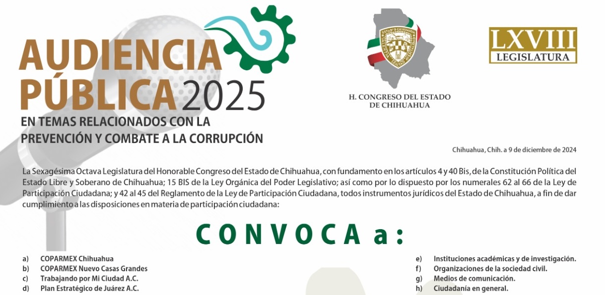 Para mayores informes, podrás consultar la convocatoria en: https://www.congresochihuahua.gob.mx/audienciaspublicas/