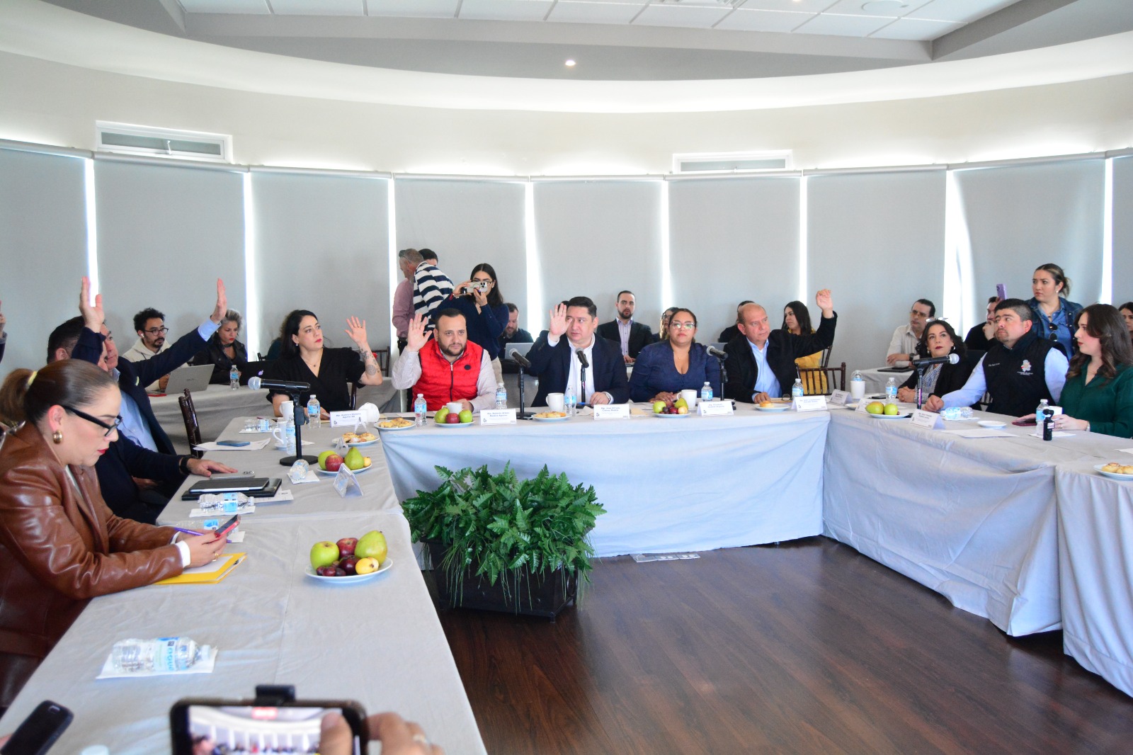 En esta reunión de trabajo, estuvieron presentes las y los diputados: Alfredo Chávez, Coordinador del PAN y presidente de la JUCOPO; Cuauhtémoc Estrada, Coordinador de MORENA; Francisco Sánchez, Coordinador de MC; Arturo Medina, Coordinador del PRI; América Aguilar, integrante del Grupo Parlamentario del PT; Octavio Borunda, representante del Partido Verde; Saúl Mireles, Subcoordinador del PAN; Alma Portillo, Subcoordinadora de MC; Guillermo Ramírez, Subcoordinador del PRI e Irlanda Márquez, integrante del Grupo Parlamentario del PT.
