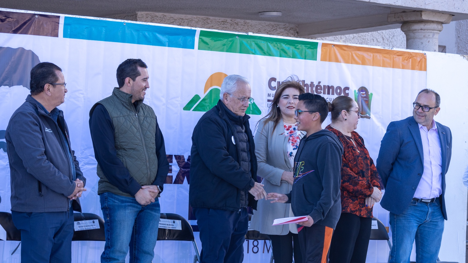 En el presídium estuvieron presentes Luly Mendoza, síndica municipal; Julio Antonio Soto, regidor presidente de la Comisión de Cultura y Acción Cívico Social; Moraima Ruelas, regidora presidenta de la Comisión de Educación; Luis Gerardo Pimentel, director de Desarrollo Social; Édgar Taurino Cereceres, recaudador de Rentas; Roberto Esparza, jefe de los Servicios Educativos de la Zona Occidente; y Jorge Luis Romo, coordinador de Educación de la Región Noroeste.