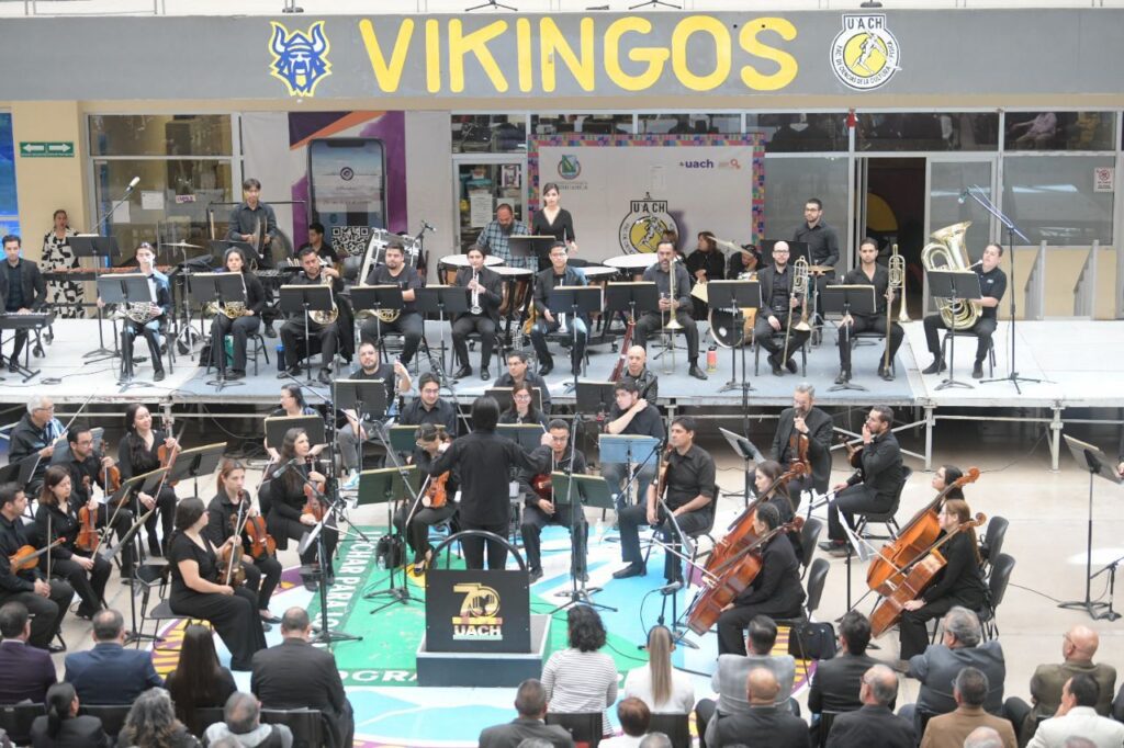 Durante la presentación, la cual fue realizada en las instalaciones de la FCCF, el Mtro. Luis Alfonso Rivera Campos, Rector de la Universidad Autónoma de Chihuahua destacó los 69 años de historia, trayectoria y logros de esta unidad en el ámbito de la cultura física y el deporte, añadió que el tiempo, así como la calidad de sus docentes, son muestra del compromiso universitario de formar a los mejores profesionistas. “Siempre nuestra encomienda es poner en alto el nombre de la UACH y su formación integral. Este concierto es una mezcla de adrenalina, cultura, arte y deporte. Esperamos que se quede grabado en el corazón de quienes pertenecen a esta escuela”, concluyó.