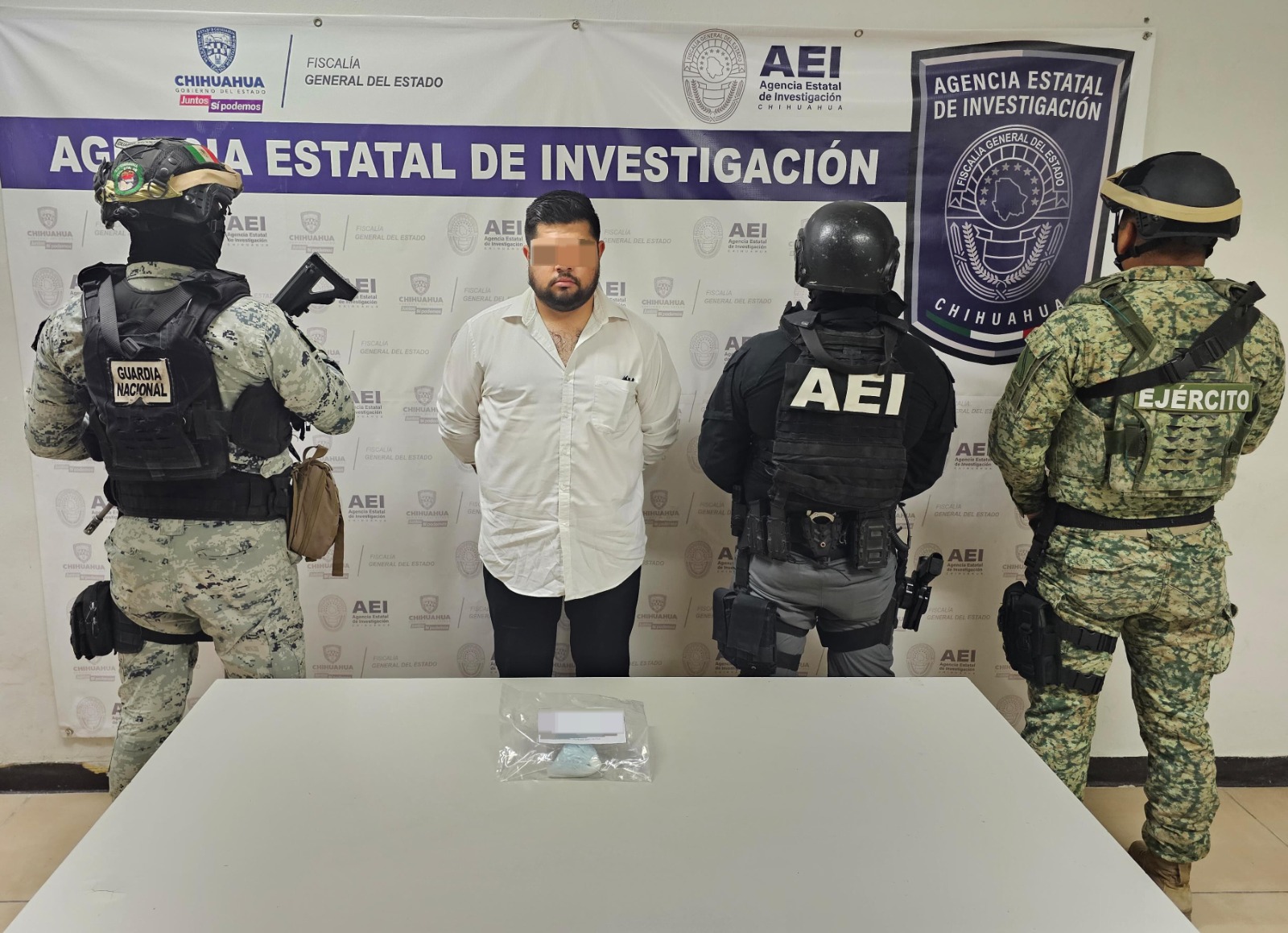 El detenido se identificó como Jorge Armando F. G., de 29 años de edad. Tripulaba un vehículo tipo sedán, color negro, cuatro puertas, marca AUDI, línea A6, modelo 2014, con matrículas de circulación del estado de Chihuahua, mismo que fue asegurado para investigación en torno a su procedencia.