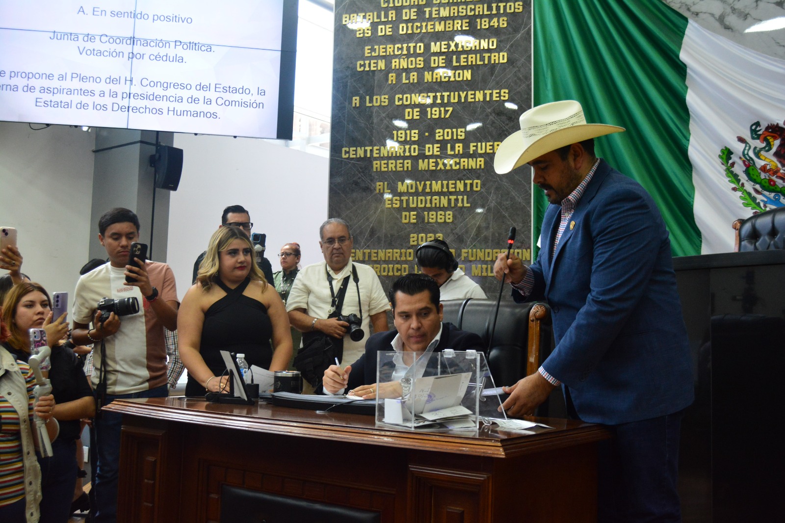 Luego de que el diputado Cuauhtémoc Estrada, coordinador de la bancada de Morena, realizará un posicionamiento personal respecto a la elección de hoy, en donde calificó de ser una elección que no era transparente al no haberse dado a conocer los nombres de los diputados que emitieron cada una de las calificaciones emitidas que evaluaron a los aspirantes,se procedió a la votación por cédula