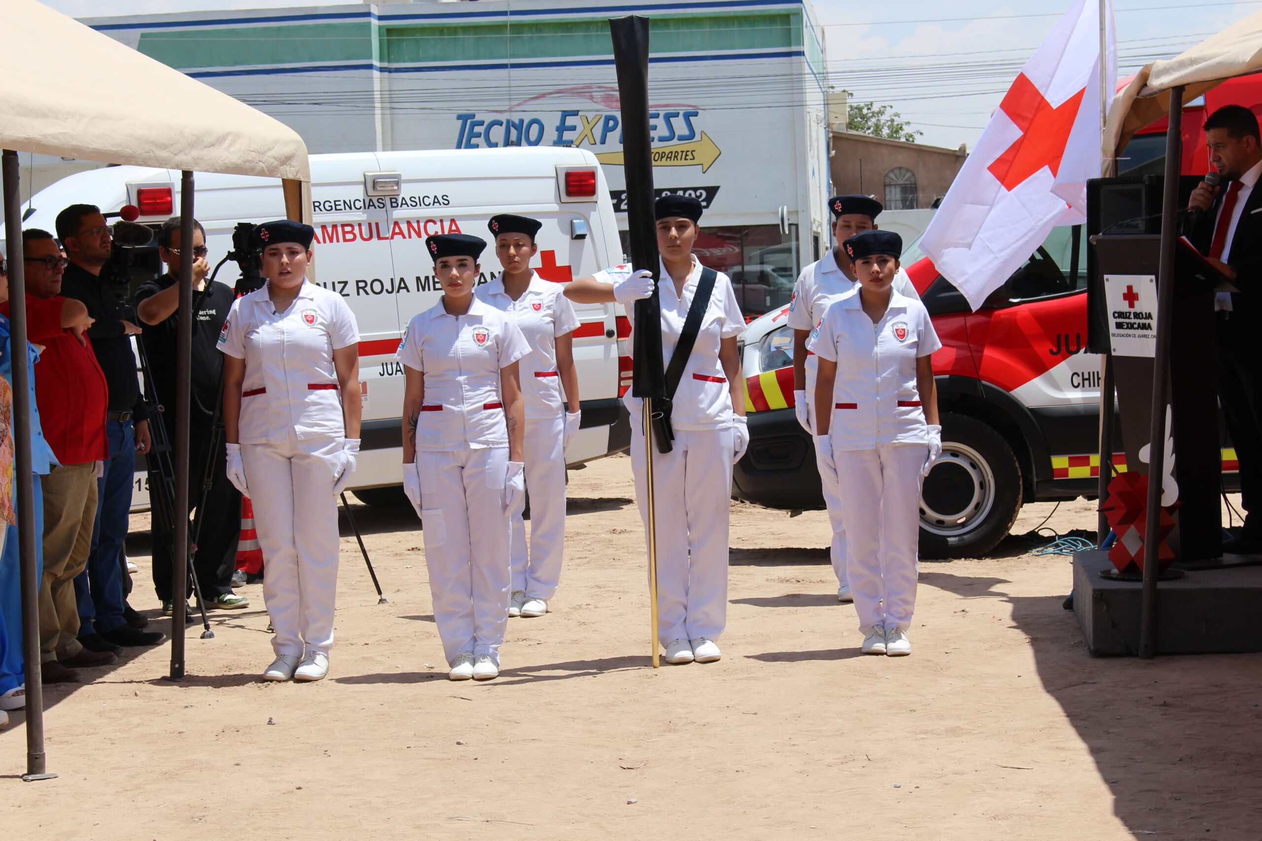 Norma Guadalupe Domínguez Domínguez; Directora Administrativa de Cruz Roja Mexicana, Delegación Ciudad Juárez; Cecilia Andrade Chaparro, Titular del DIF Estatal Zona Norte, en representación de la Gobernadora y de la Presidenta Honoraria de Cruz Roja Mexicana en el Estado.