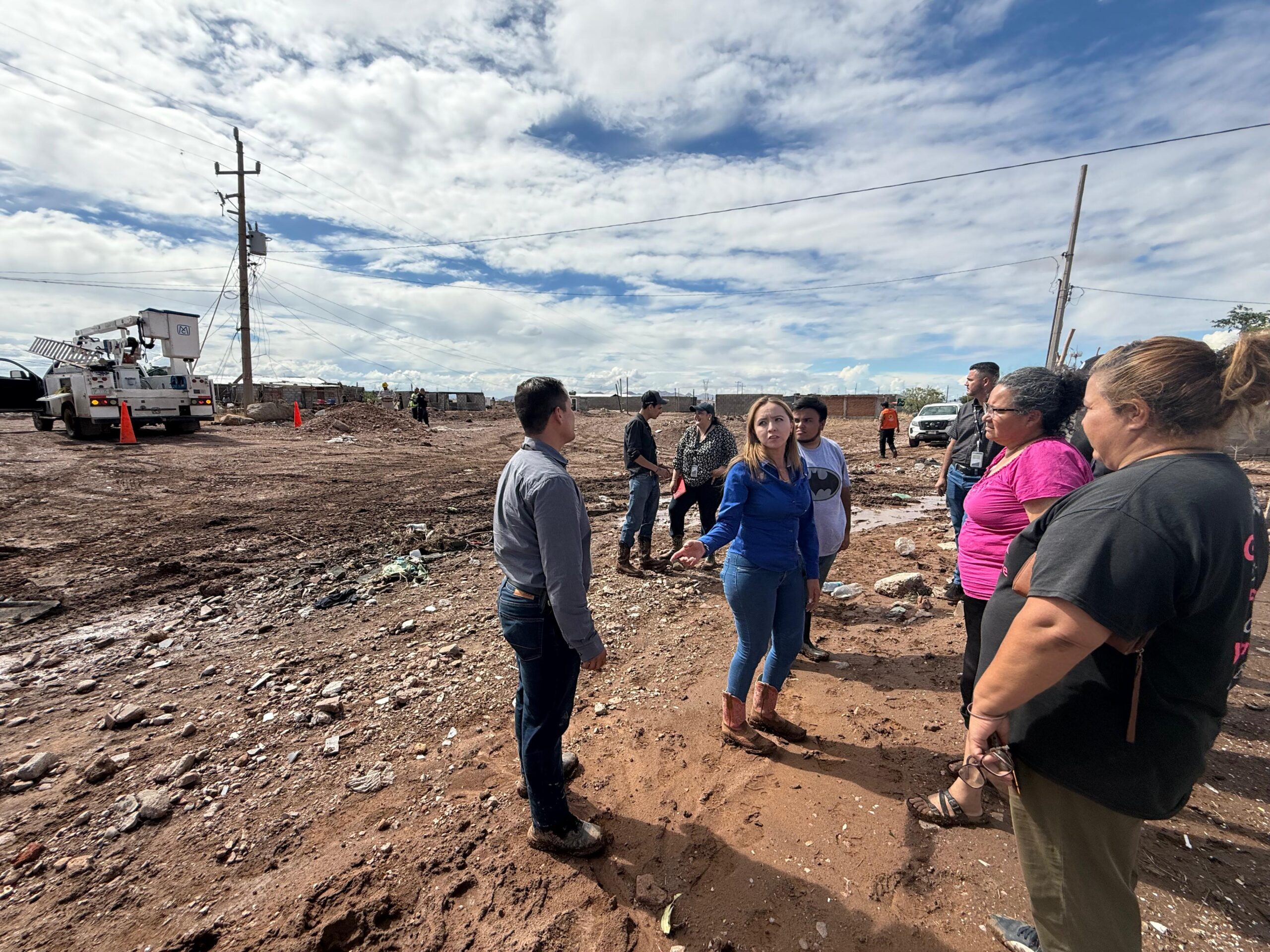 Chihuahua, Chih. – Como parte de los recorridos que ha estado realizando en el Distrito 16 ante las recientes lluvias que han provocado severas inundaciones en la capital, la diputada local por el PAN, Carla Rivas, atendió una emergencia en el cruce de la colonia Ampliación Valle Dorado y 11 de febrero, donde vecinos reportaron que un arroyo presentaba una descarga eléctrica, poniendo en peligro a las familias de la zona.
