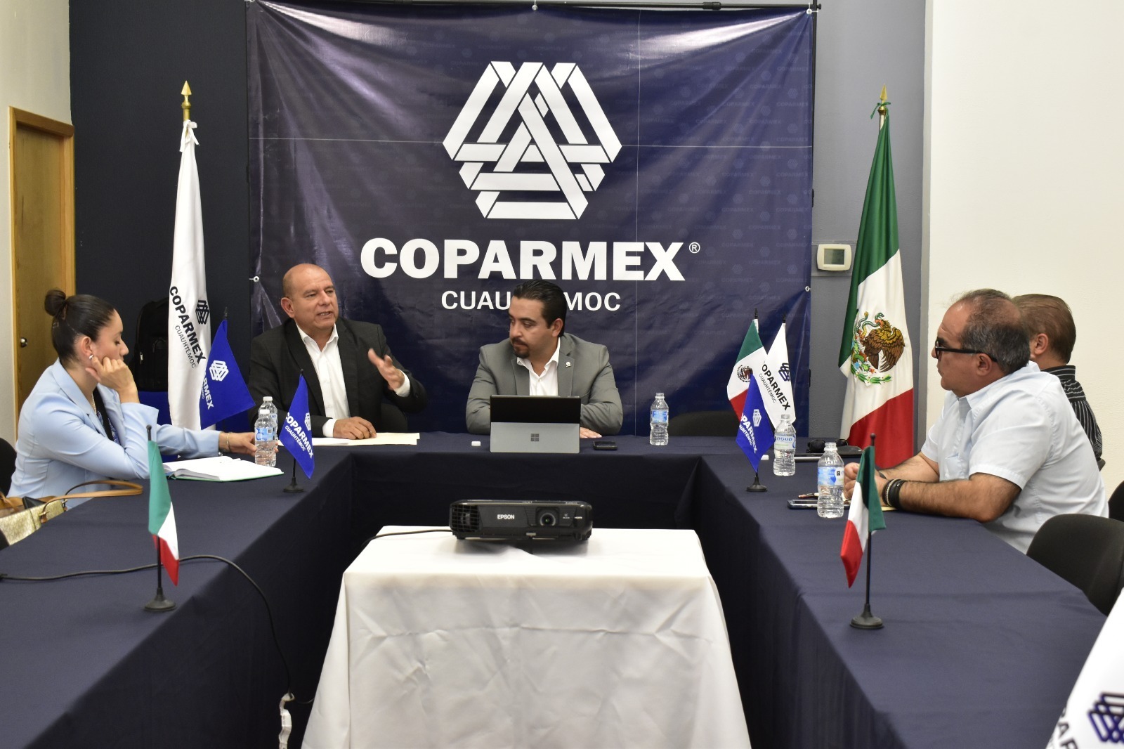 Chihuahua, Chih., 15 de julio de 2025 — Con el objetivo de socializar su iniciativa de reforma electoral para eliminar las diputaciones plurinominales de lista, el diputado local y coordinador del Grupo Parlamentario de morena en el Congreso del Estado de Chihuahua, Cuauhtémoc Estrada Sotelo, sostuvo una serie de reuniones con integrantes de la Confederación Patronal de la República Mexicana (COPARMEX) en las ciudades de Chihuahua, Cuauhtémoc y Juárez.