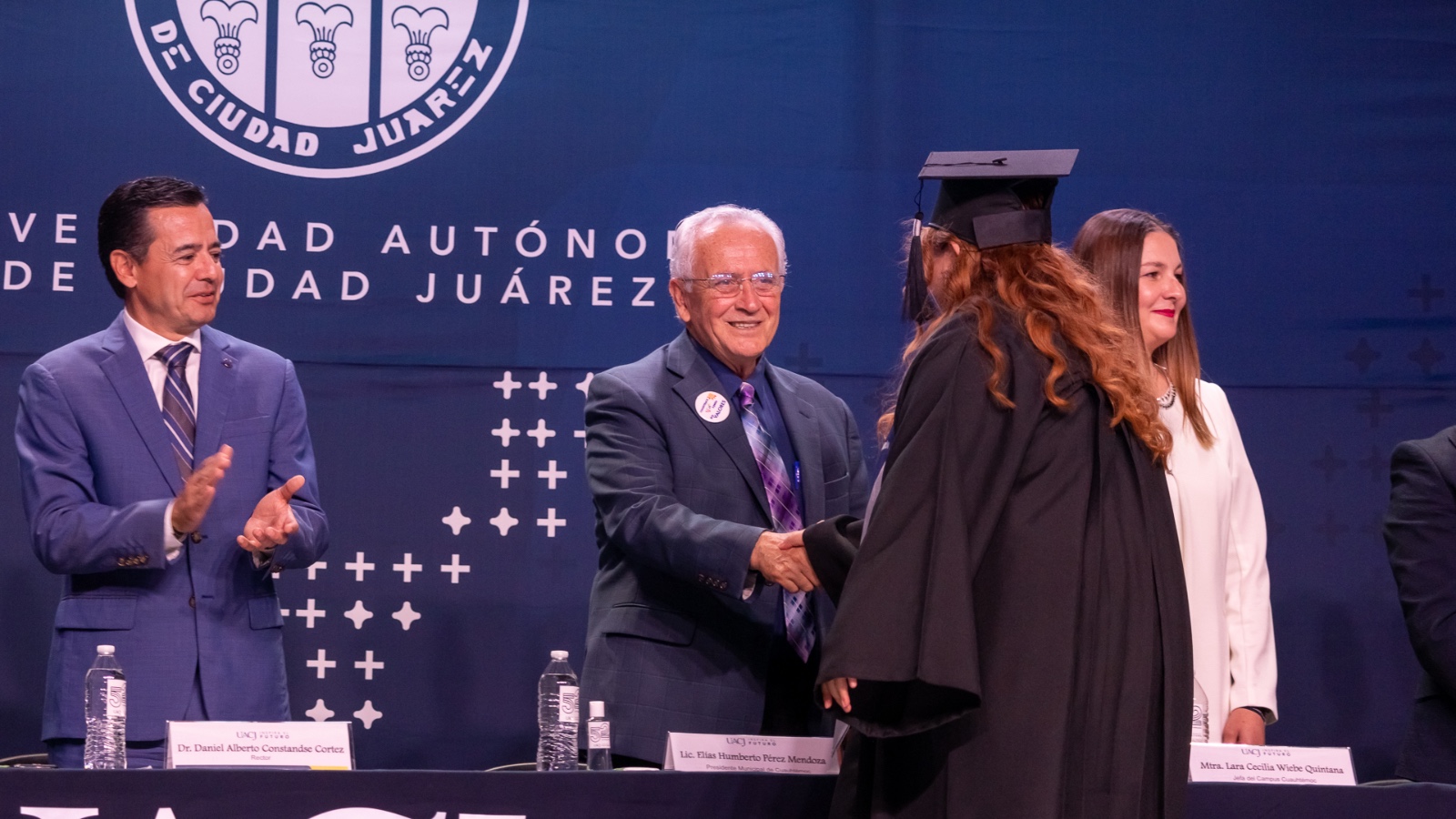 Por su parte, el rector de la UACJ, el doctor Daniel Constandse, agradeció la anfitrionía del alcalde Beto Pérez, así como el esfuerzo y compromiso de la jefa de Campus, Lara Wiebe. Felicitó a cada uno de los egresados, reconociendo su esfuerzo, perseverancia y estancia en la Universidad.