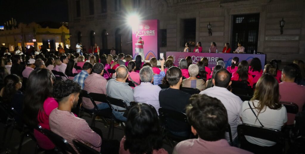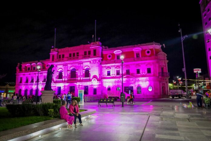 La jornada concluyó con la iluminación rosa de la Presidencia Municipal y de los edificios emblemáticos del primer cuadro de la ciudad, como símbolo de solidaridad y esperanza en la lucha contra el cáncer de mama.
