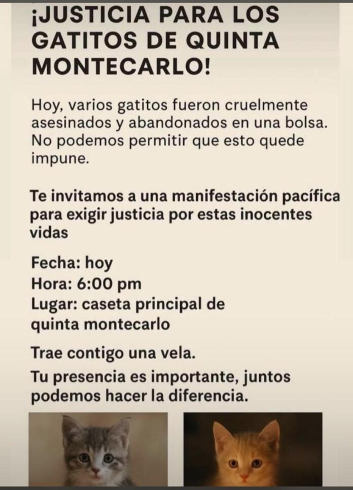 Invitan a manifestación pacífica ante as3s1nat0 de gatos en Quinta Montecarlo