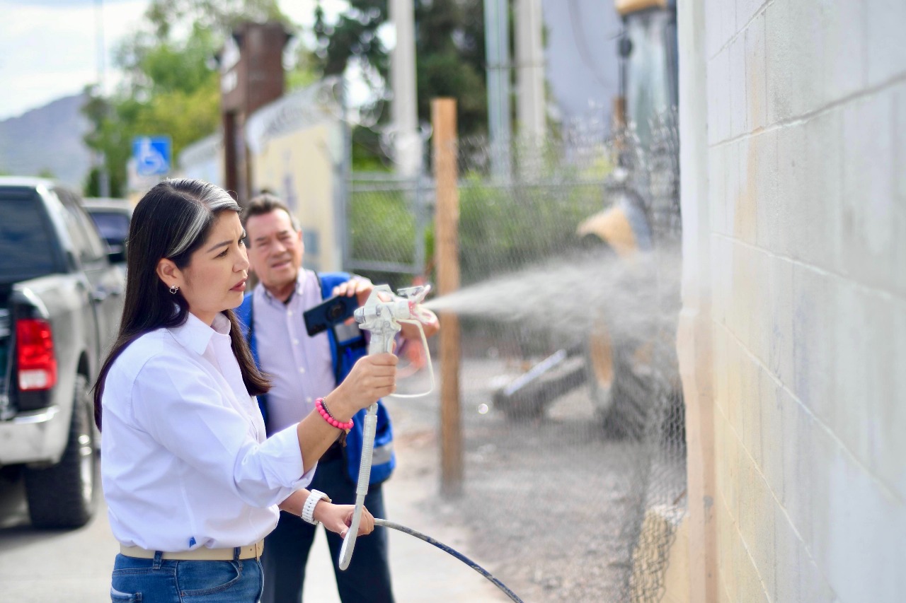 Chihuahua, Chih.- Con el objetivo de mejorar las condiciones de los espacios educativos y fortalecer el sentido de comunidad entre estudiantes, docentes y padres de familia, la diputada Local Nancy “La China” Frías, en coordinación con la Subdirección de Educación de la Dirección de Desarrollo Humano y Educación del Gobierno Municipal, llevaron el programa “Pinta tu Escuela” a la Secundaria Estatal No. 3066 Plutarco Elías Calles, ubicada en la colonia Chihuahua 2000.