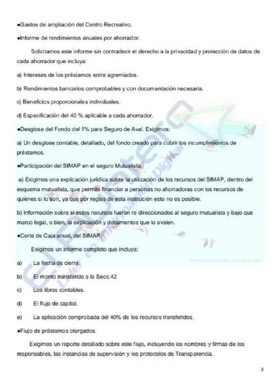 Exigen a dirigencia de la Sección 42 auditoría externa, rendición de cuentas e información financiera sobre el SIMAP y recursos ejercidos por el sindicato; avalada por más de mil firmas