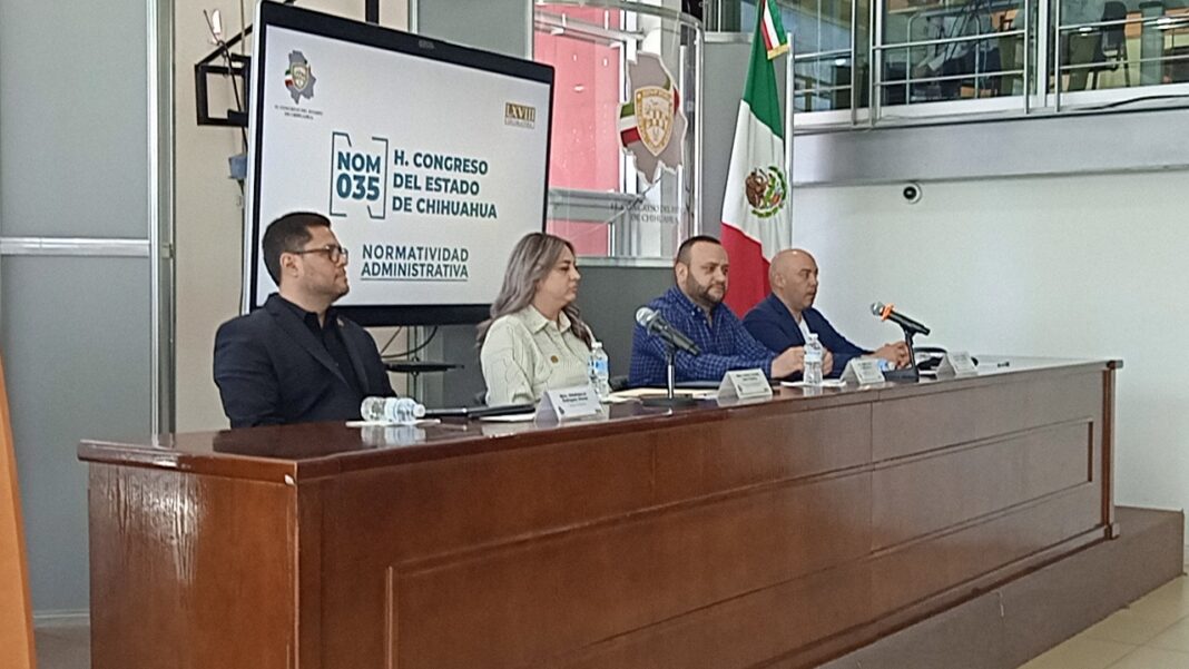 Chihuahua.- El Congreso del Estado recibió la certificación en la NOM-035 de la Secretaría del Trabajo y Previsión Social, que establece directrices para identificar, analizar y prevenir los factores de riesgo psicosocial en el trabajo; el administrador del Congreso, Ottofriderch Rodríguez, señaló que esto demuestra el compromiso del Poder Legislativo por el bienestar de las personas que laboran en el lugar.
