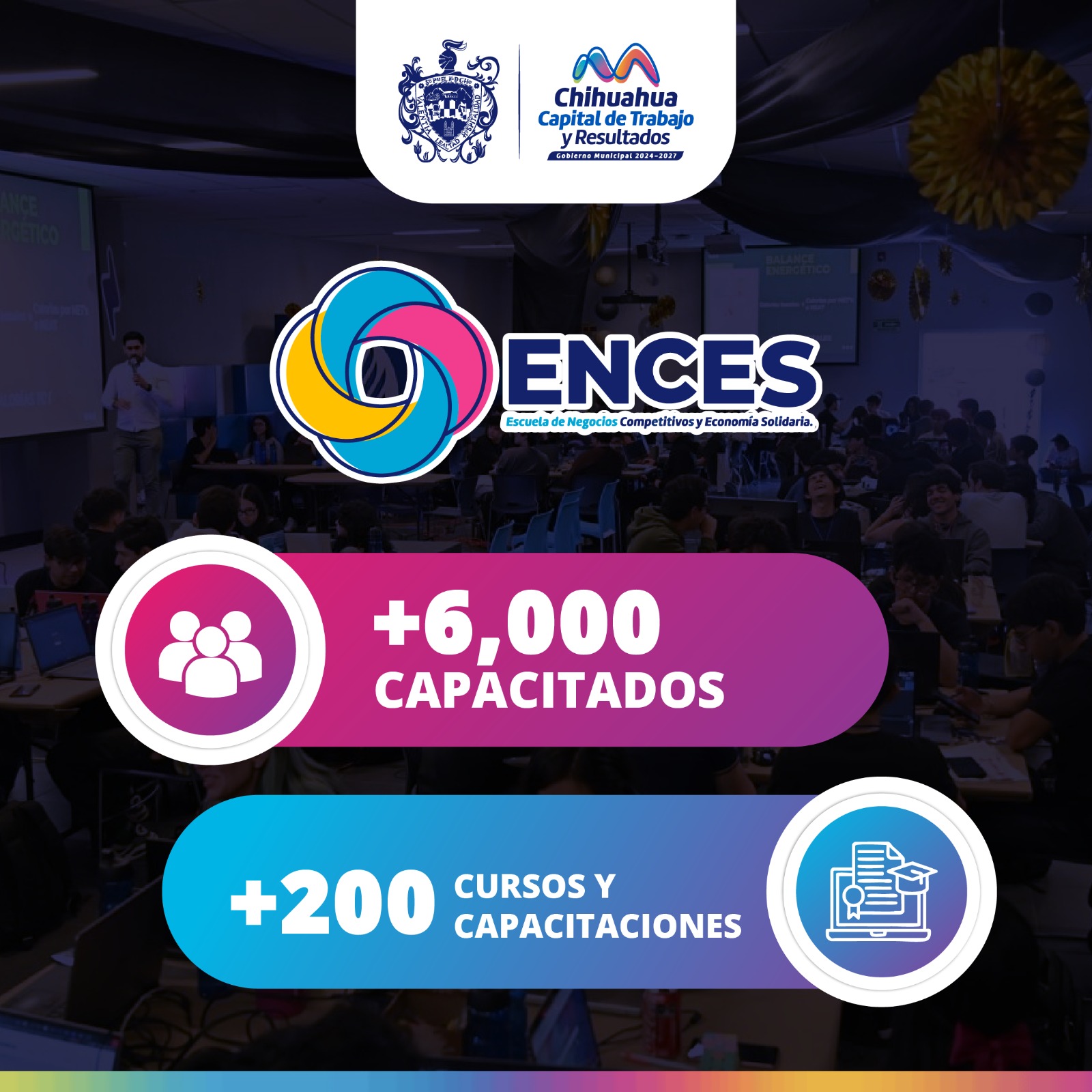 H. Ciudad de Chihuahua, Chih.– El Gobierno Municipal de Chihuahua, a través de la Escuela de Negocios Competitivos y Economía Solidaria (ENCES), ha capacitado a más de 6 mil chihuahuenses mediante 200 cursos, talleres y programas formativos desde su creación en noviembre de 2021.
