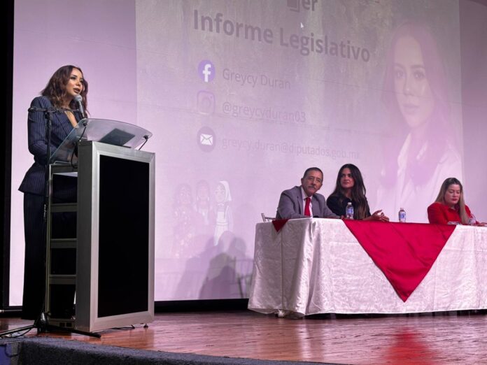 Cuauhtémoc, Chih.— Con un mensaje de compromiso, cercanía y resultados, la diputada federal Greycy Marian Durán Alarcón, del Partido del Trabajo (PT), presentó su Primer Informe de Actividades Legislativas, en el que destacó un año de intenso trabajo en el Congreso de la Unión y en territorio como representante de las y los chihuahuenses.