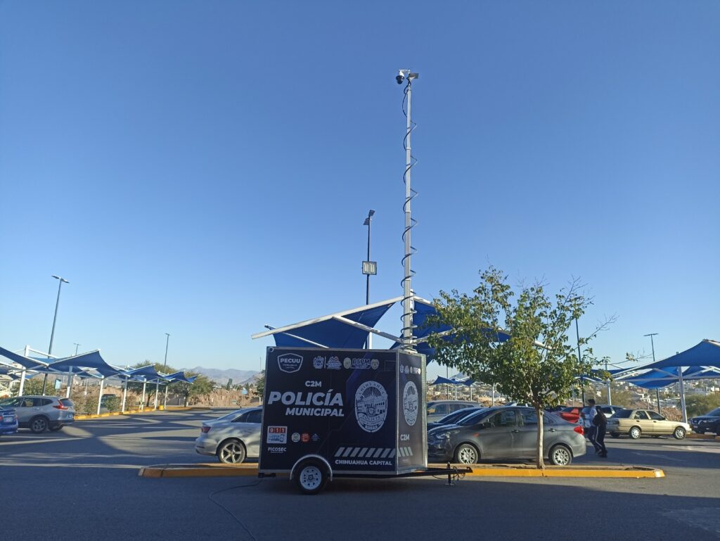 H. Ciudad de Chihuahua, Chih., 8 de octubre de 2025.- Los remolques denominados C2M de la Dirección de Seguridad Pública Municipal (DSPM), son cámaras móviles, los cuales son una herramienta tecnológica que permite reforzar la vigilancia y mejorar la capacidad de respuesta ante cualquier emergencia o incidente en distintos puntos de la ciudad.