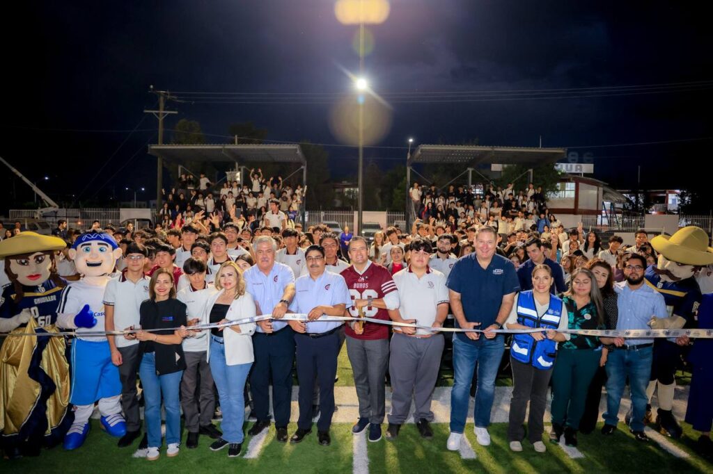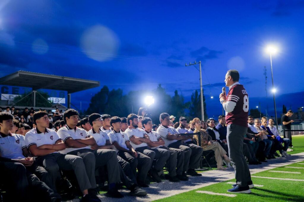 “Hoy los jóvenes del CETIS 86 están en la gloria, tienen un campo digno, con luz y gradas, fruto del esfuerzo conjunto y de un alcalde que impulsa la política con perspectiva de familia”, expresó.