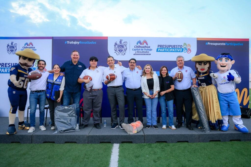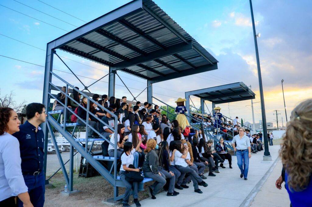 H. Ciudad de Chihuahua, Chih.– El alcalde de Chihuahua, Marco Bonilla, hizo entrega de las graderías y luminarias instaladas en la cancha de futbol americano del Centro de Estudios Tecnológicos Industrial y de Servicios número 86 (CETIS), un proyecto impulsado por la propia comunidad estudiantil para que ganara la consulta del Presupuesto Participativo 2025, con más de 3 mil votos a favor.