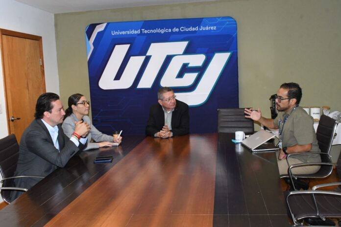 Con el propósito de promover el espíritu emprendedor entre la comunidad estudiantil, el rector de la Universidad Tecnológica de Ciudad Juárez (UTCJ), Óscar Ibáñez Hernández, sostuvo una reunión con el regidor Alejandro Acosta, así como con Tania Maldonado, directora general de Desarrollo Económico del Gobierno Municipal, para analizar nuevas estrategias conjuntas que fortalezcan el esa área.