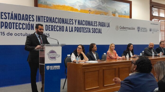 El Gobierno del Estado de Chihuahua, en coordinación con la Oficina en México del Alto Comisionado de las Naciones Unidas para los Derechos Humanos (ONU-DH), llevó a cabo la presentación de los estándares nacionales e internacionales para la protección del derecho a la protesta social.