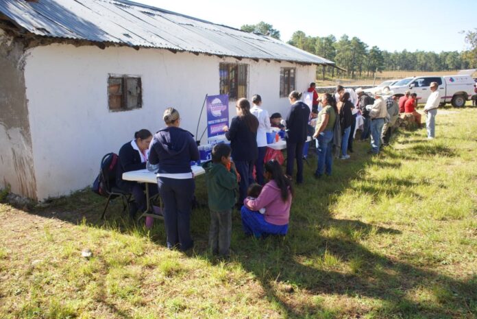 El secretario de Salud, Gilberto Baeza y el representante de la Organización Panamericana de la Salud (OPS), José Moya Medina, encabezaron la jornada de vacunación y entrega de apoyos alimentarios, a habitantes del poblado de Chiqueros, municipio de Guachochi.