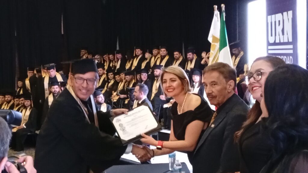 La ceremonia estuvo encabezada por el fundador de la URN Chihuahua, el Dr. Daniel García Coello, autoridades educativas de la institución, estatales y locales. El director general de la URN Virtual, el Doctor Jorge Sandoval Aldana, felicitó a todos los graduandos, muchos de ellos de posgrados de la rama educativa -maestras y maestros que siguen formándose y profesionalizándose para ofrecer una educación de calidad a las presentes y futuras generaciones.