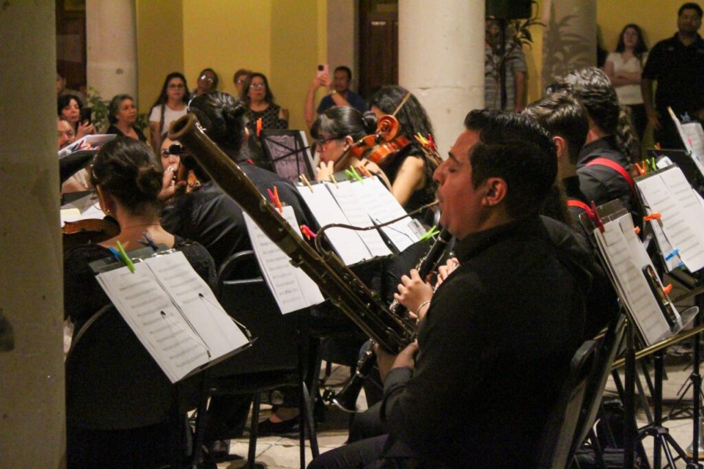 El recinto recibió a la orquesta integrada por docentes del CEM y alumnos de nivel avanzado de la institución, bajo la batuta de la maestra Melodía Gaytán, que ofreció una pequeña plática introductoria sobre los géneros interpretados.
