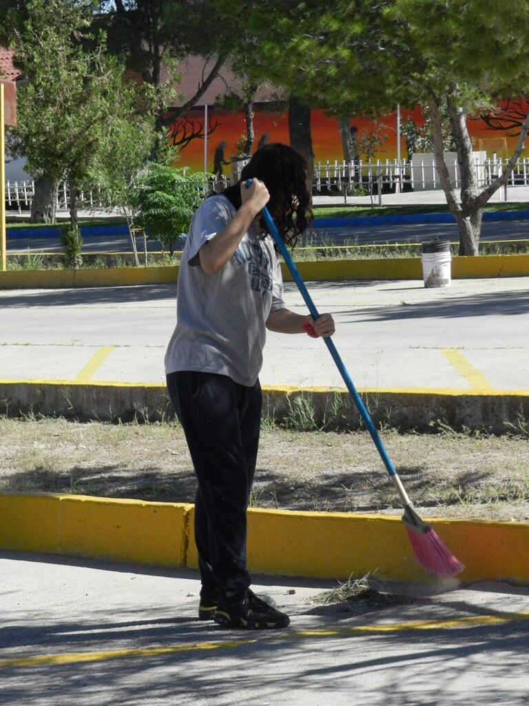 Los estudiantes participaron de manera voluntaria en diversas labores, como la barrida general del estacionamiento, el levantamiento de ramas y el retiro de hierba acumulada en distintas áreas verdes. Su participación contribuyó a mantener un entorno limpio y ordenado para toda la comunidad escolar.