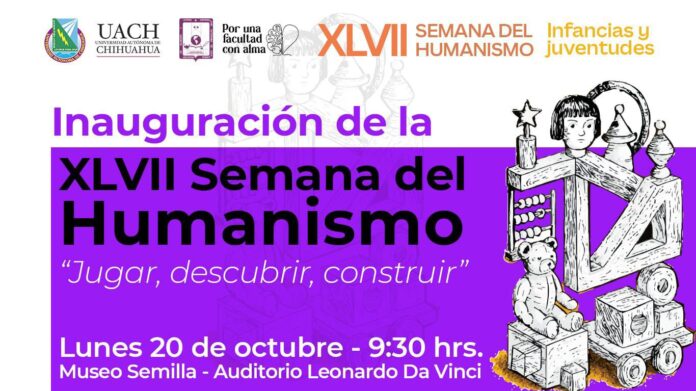 La Facultad de Filosofía y Letras de la Universidad Autónoma de Chihuahua invita a la comunidad universitaria y al público en general a la XLVII Semana del Humanismo, que se realizará del 20 al 24 de octubre bajo el lema “Jugar, descubrir, construir” dedicada a las infancias y juventudes.