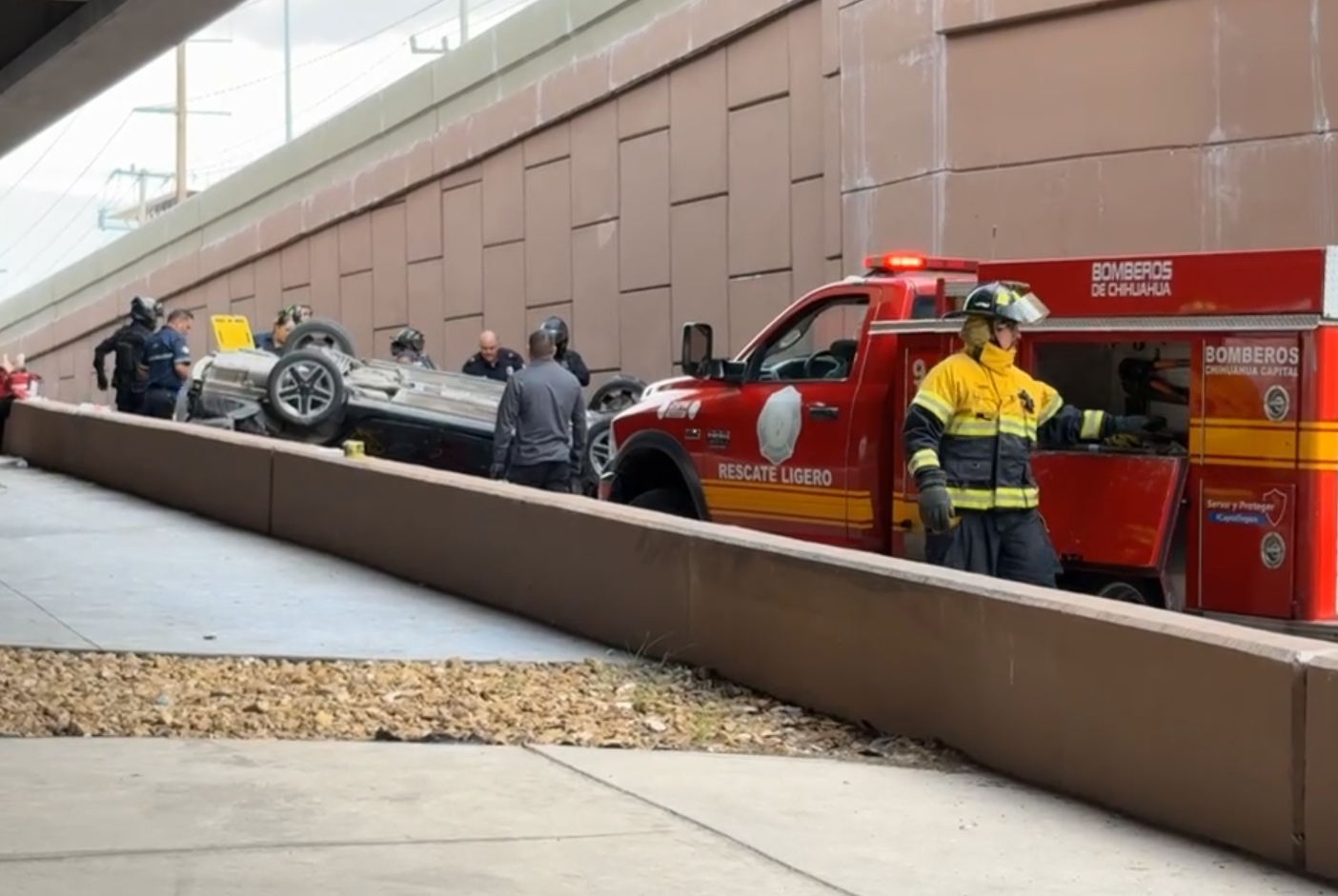 Chihuahua.- Un automóvil cayó desde el puente en el periférico de la Juventud, lo que dejó un hombre lesionado.