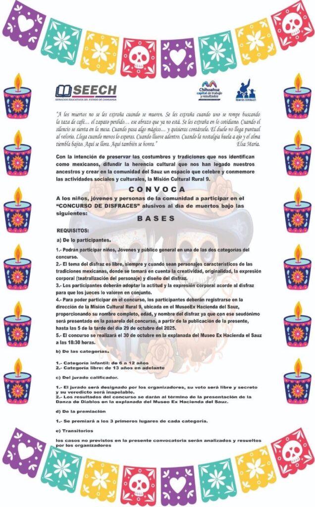 Todas estas actividades se llevarán a cabo el día 30 de octubre en la explanada del Museo Ex Hacienda del Sauz bajo el siguiente programa: