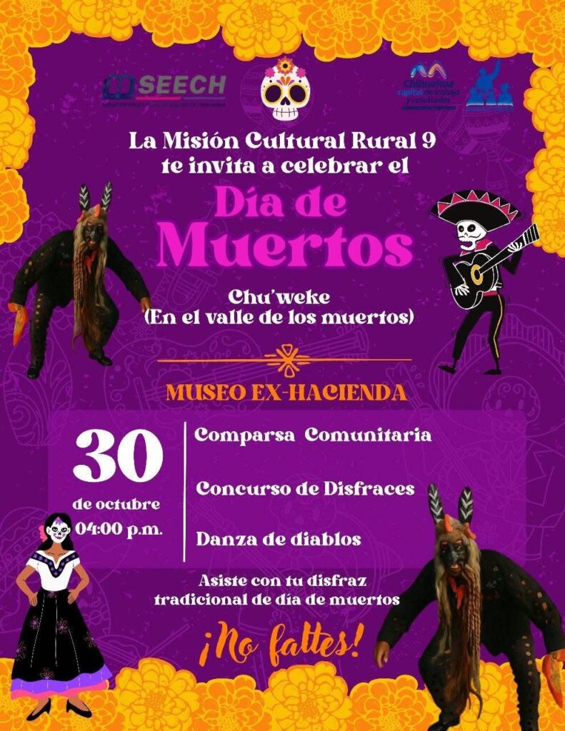 Organizan Misión Cultural 9 y escuelas de El Sauz y Nuevas Delicias festival recuperando las tradiciones rarámuris en el marco del Día de Muertos