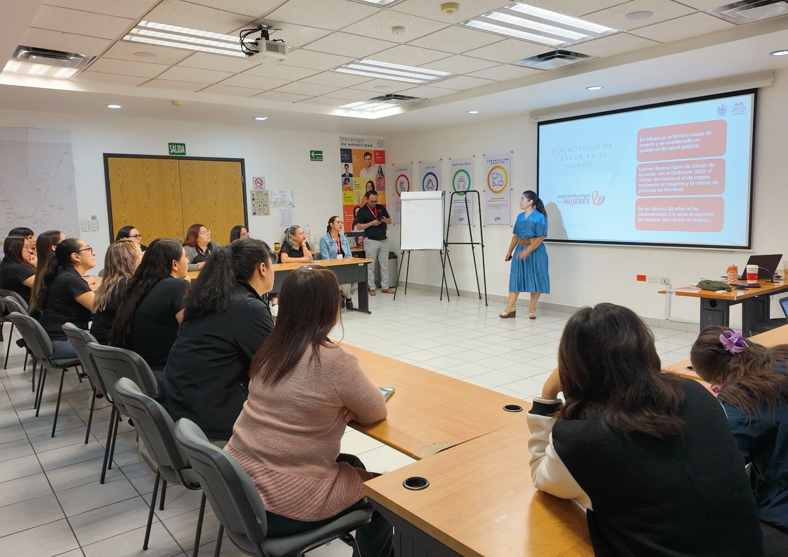 Durante las sesiones, el personal del Instituto compartió información sobre los factores de riesgo, los signos de alerta y los servicios de atención y acompañamiento que ofrece el IMM de manera gratuita a las mujeres chihuahuenses. Asimismo, se destacó el papel de las empresas e instituciones como aliadas para fomentar la prevención y el cuidado de la salud entre su personal.
