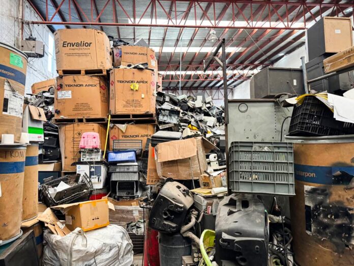 Durante la inspección, se constató que la empresa operaba sin las medidas mínimas de seguridad. Residuos peligrosos como tablillas electrónicas, aditamentos con mercurio, cadmio o plomo, baterías de ácido plomo e ion litio, balastros, aceite y grasa usada, fueron encontrados mezclados con residuos de manejo especial y sólidos urbanos, sin la debida separación ni etiquetado de identificación. Además, los materiales estaban almacenados a granel, sin señalización ni pasillos de seguridad.