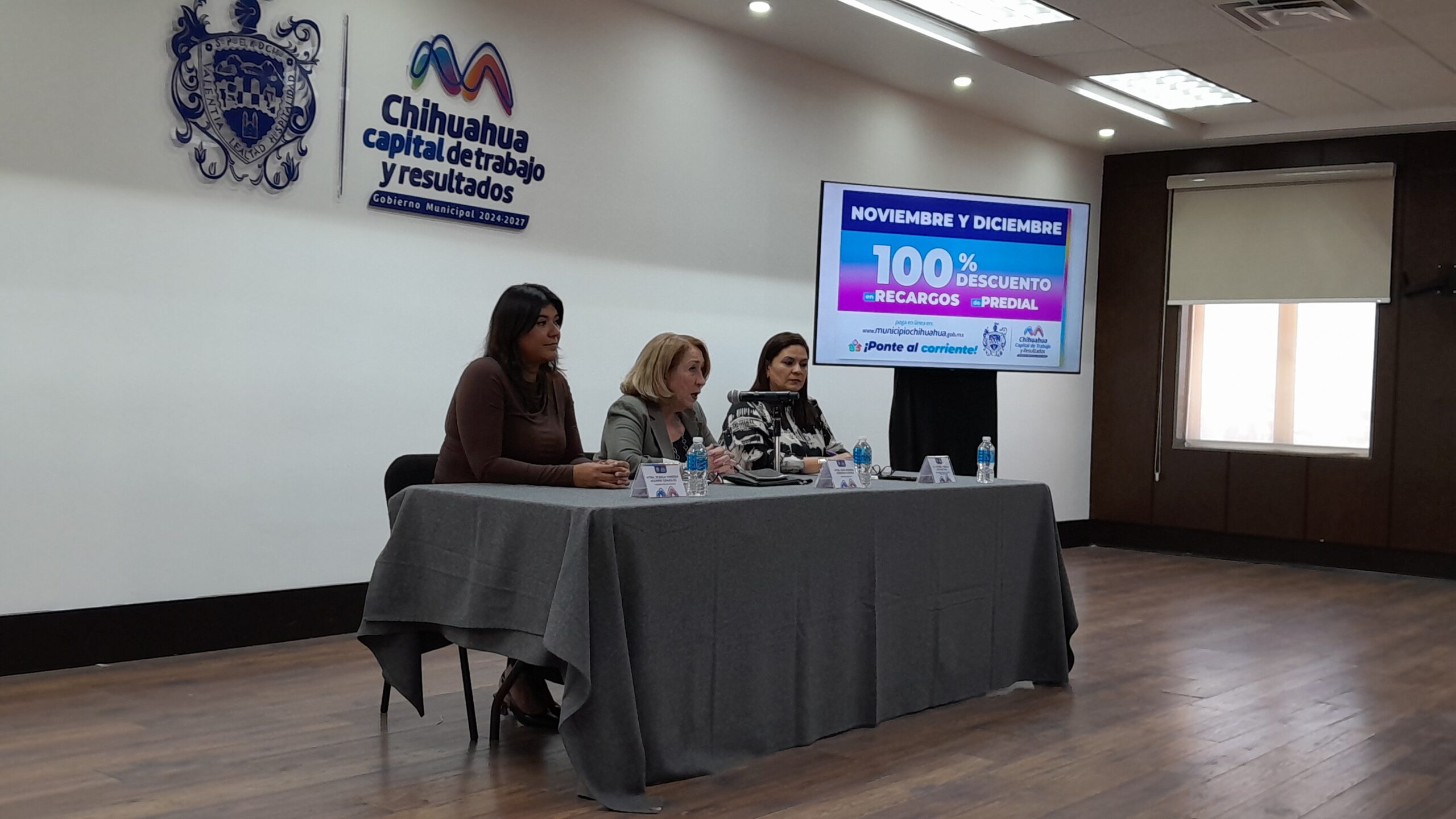 La Tesorera Municipal, Aida Amanda Córdova Chávez, anunció que el Gobierno Municipal aplicará un descuento del 100% en recargos del impuesto predial durante los meses de noviembre y diciembre, con el fin de apoyar a las familias chihuahuenses que mantienen adeudos.
