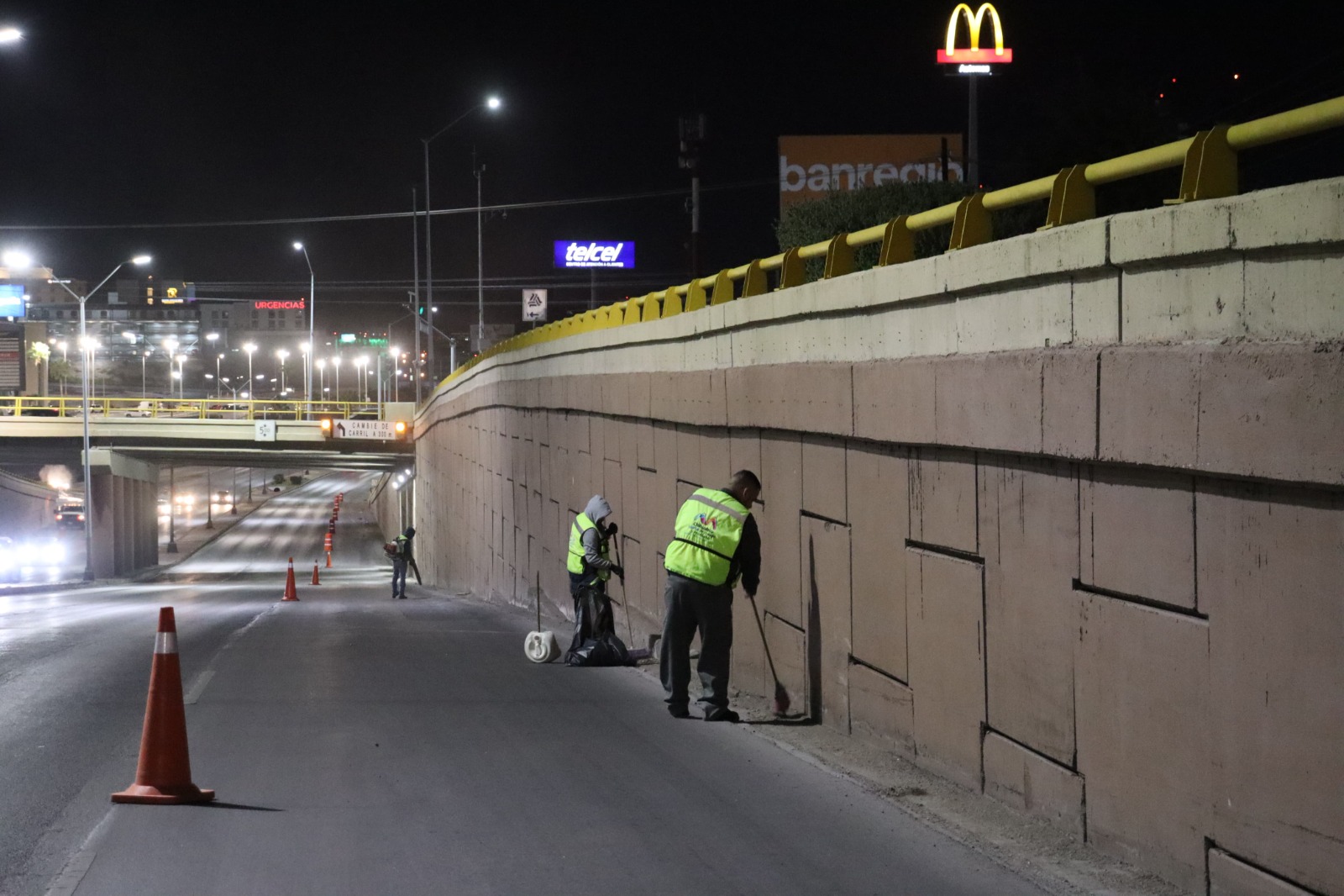 H. Ciudad de Chihuahua, Chih., a 30 de octubre de 2025.- Con la intención de mantener la buena imagen urbana de Chihuahua Capital, el Gobierno Municipal, a través de la Dirección de Mantenimiento Urbano, realiza operativos nocturnos de limpieza en puentes, gazas y vialidades primarias ubicadas al norte de la ciudad.