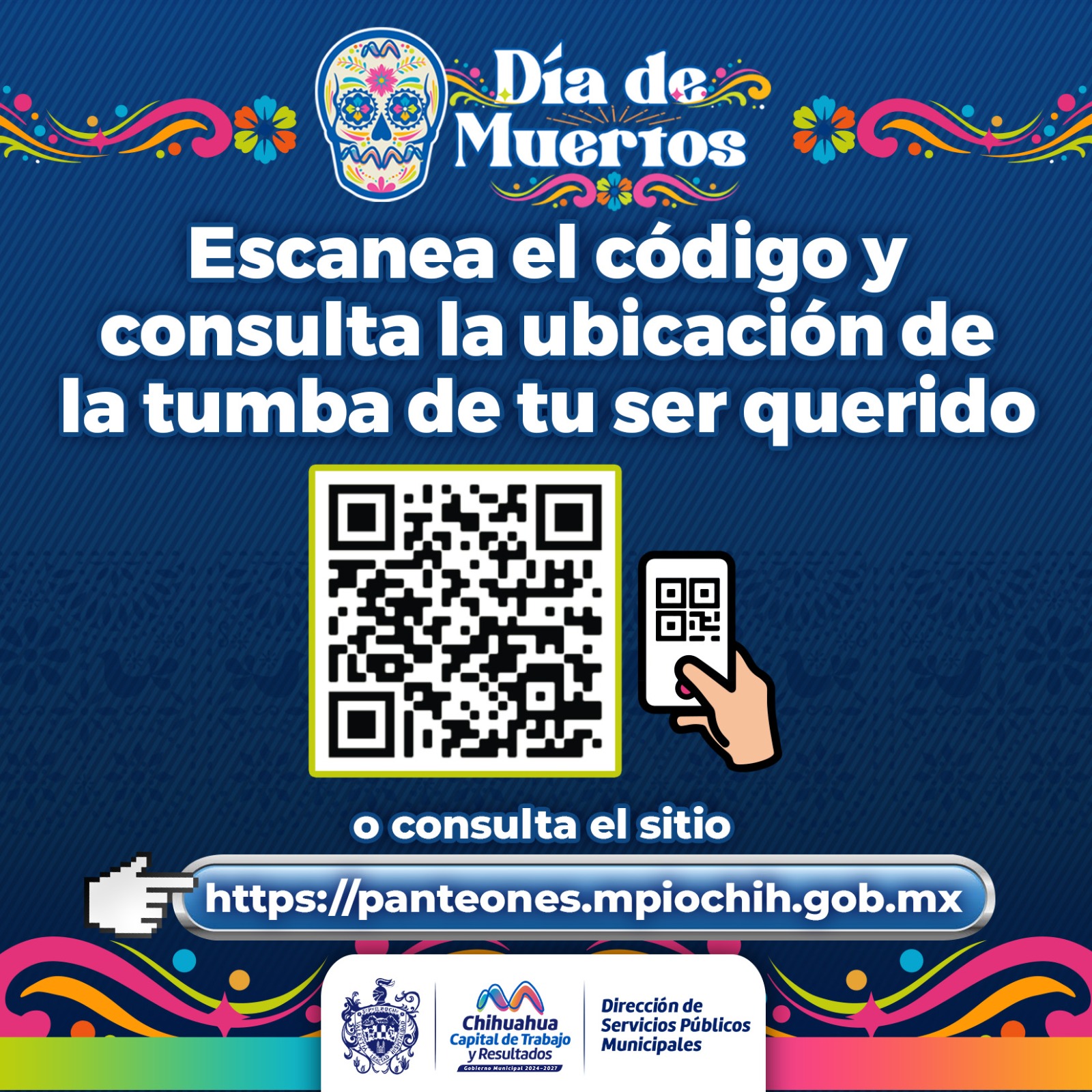 H. Ciudad de Chihuahua, Chih., a 29 de octubre de 2025.- El Gobierno Municipal, a través de la Dirección de Servicios Públicos Municipales, pone a disposición de la ciudadanía un sitio web con el cual podrán encontrar de forma sencilla a sus familiares o seres queridos en cualquiera de los cuatro cementerios municipales.