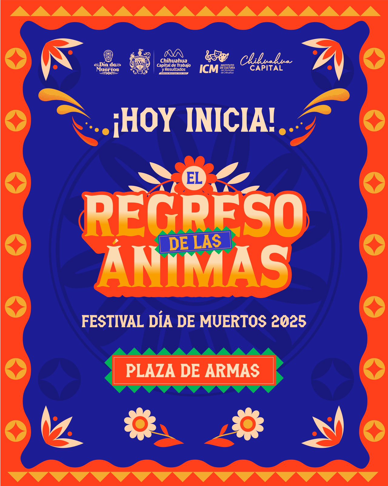 H. Ciudad de Chihuahua, Chih., a 1 de noviembre de 2025.- El Gobierno Municipal de Chihuahua, a través del Instituto de Cultura, inicia hoy al Festival de Día de Muertos 2025 “El Regreso de las Ánimas”, una de las celebraciones más esperadas por las familias chihuahuenses, que llenará la Plaza de Armas de color, arte y tradición.