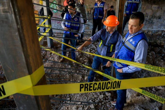 H. Ciudad de Chihuahua, Chih., a 3 de noviembre de 2025.- El alcalde Marco Bonilla, recorrió la parte baja del puente ubicado en la calle Río Colorado y Circuito Vista Montana, que fue afectado por las lluvias, para supervisar el inicio de los trabajos de remediación que permitirán que a finales del año los vehículos puedan volver a transitar.