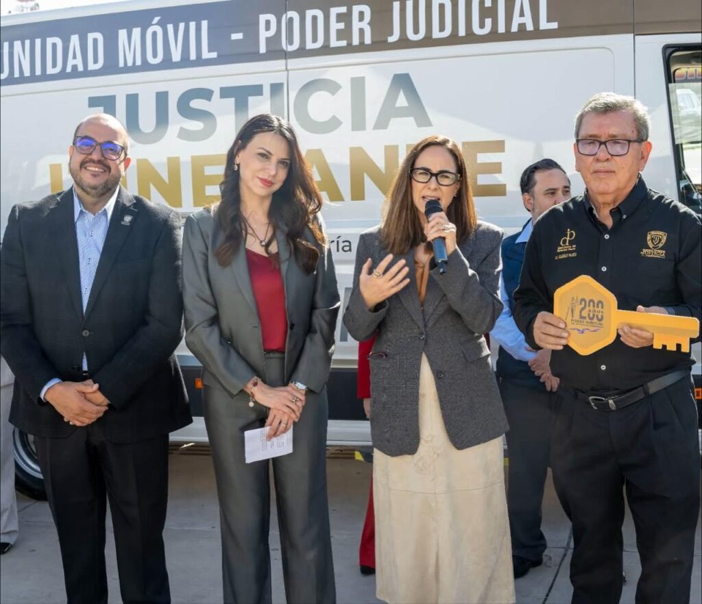 Chihuahua, Chih. – En el marco de la conmemoración por los 200 años del Poder Judicial, se llevó a cabo la entrega oficial de la primera Unidad Móvil de Justicia Itinerante, un proyecto que busca acercar los servicios jurídicos a las comunidades alejadas y grupos de mayor vulnerabilidad, en aras de fortalecer el acceso a la justicia con la sociedad.