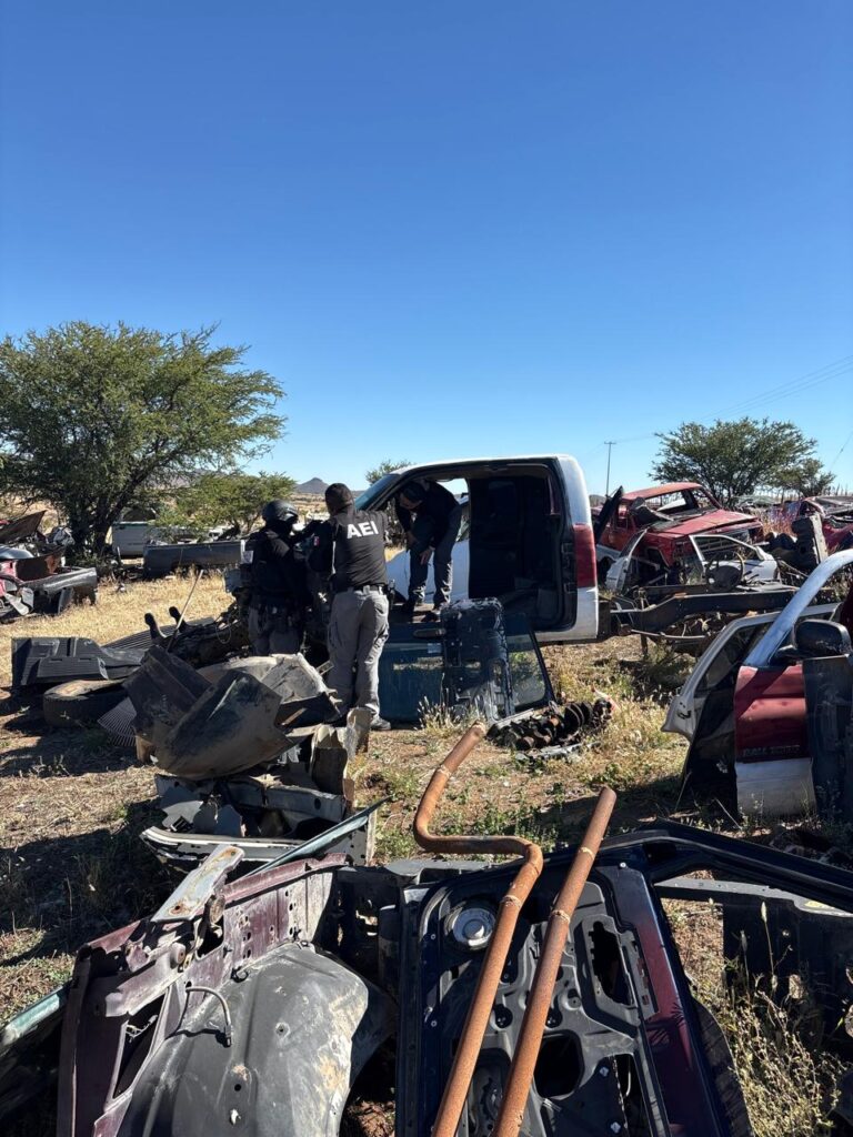 Como parte de los trabajos, el equipo multidisciplinario, acudió al establecimiento denominado auto partes Punto Alegre, ubicado en la carretera Parral- Santa Bárbara, en donde inspeccionaron 60 vehículos y diversas piezas, cuyos números de serie y matrículas se verificaron en las diferentes plataformas, a fin de corroborar si contaban con reporte de robo.