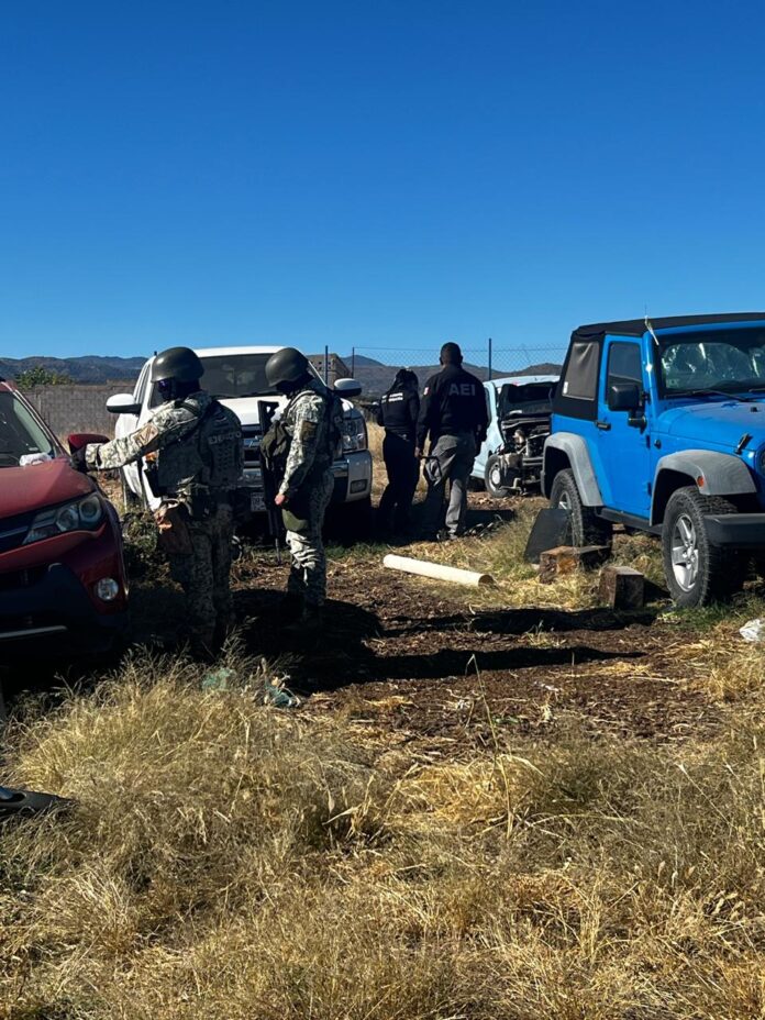 En la diligencia realizada este jueves 06 de noviembre, participaron Agentes del Ministerio Público adscritos a la Unidad Especializada en Investigación, de Robo de Vehículos, elementos de la Agencia Estatal de Investigación, Personal del Ejército Mexicano y Guardia Nacional.