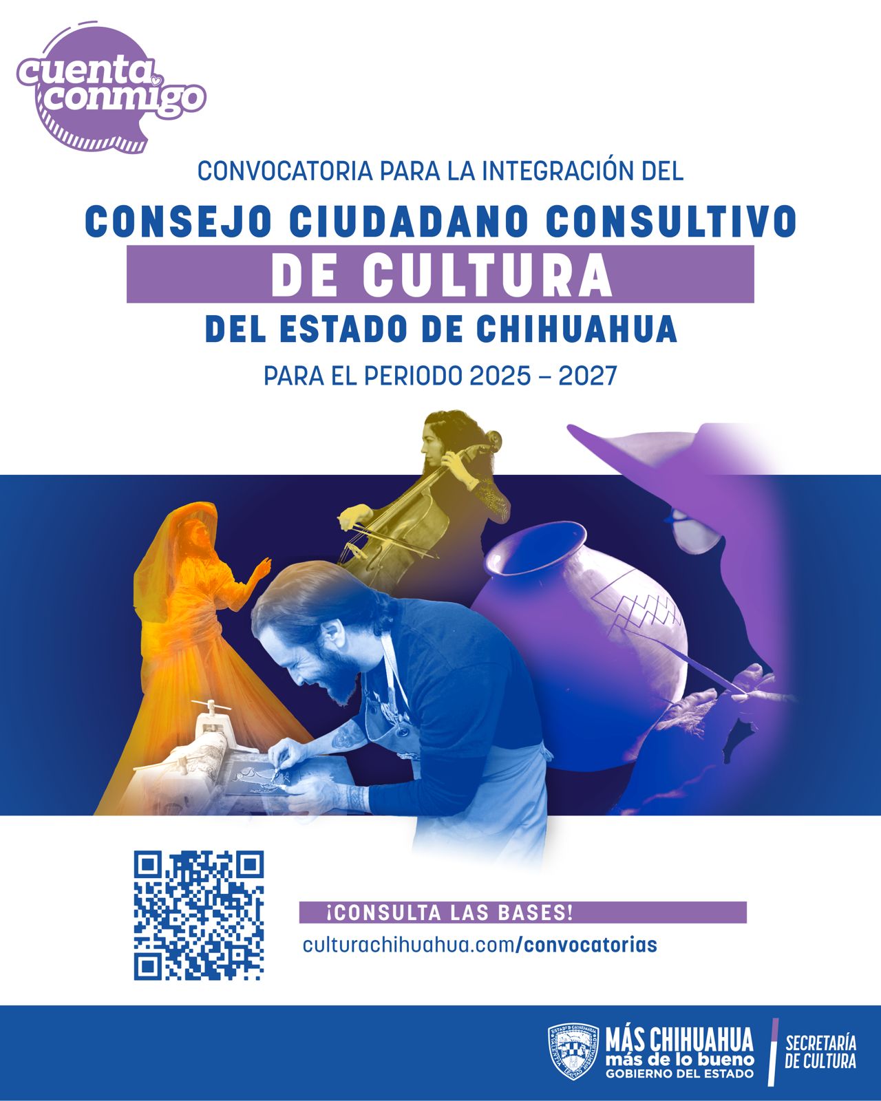 El Gobierno del Estado, a través de la Secretaría de Cultura, invita a la ciudadanía a participar en la convocatoria para integrar el Consejo Consultivo Ciudadano de Cultura para el periodo 2025-2027, así como en el proceso de elección de consejeras y consejeros titulares y suplentes.