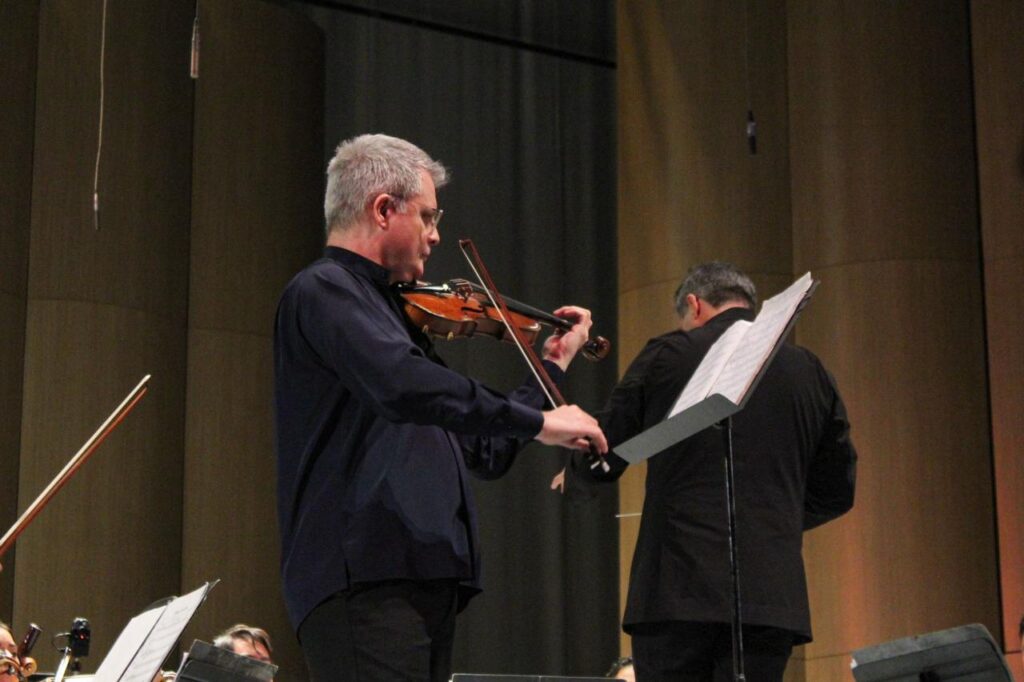 Previo al concierto, el directo de la Ofech y el violinista Alejandro Drago, ofrecieron una charla músical, en la que compartieron con las y los asistentes, la inspiración y el proceso de grabación detrás del proyecto, el cual incluye un repertorio de obras que reflejan la identidad sonora y el legado de tres décadas de música compartida.